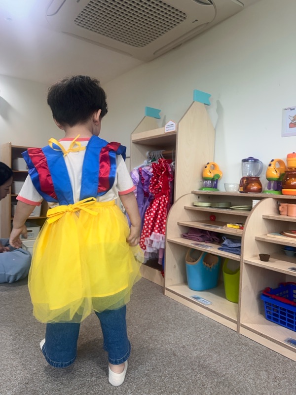 아이들이 입을 수 있는 코스튬옷들이 몇벌 있었습니다. 요즘 백설공주를 너무 좋아하는 아이는,,